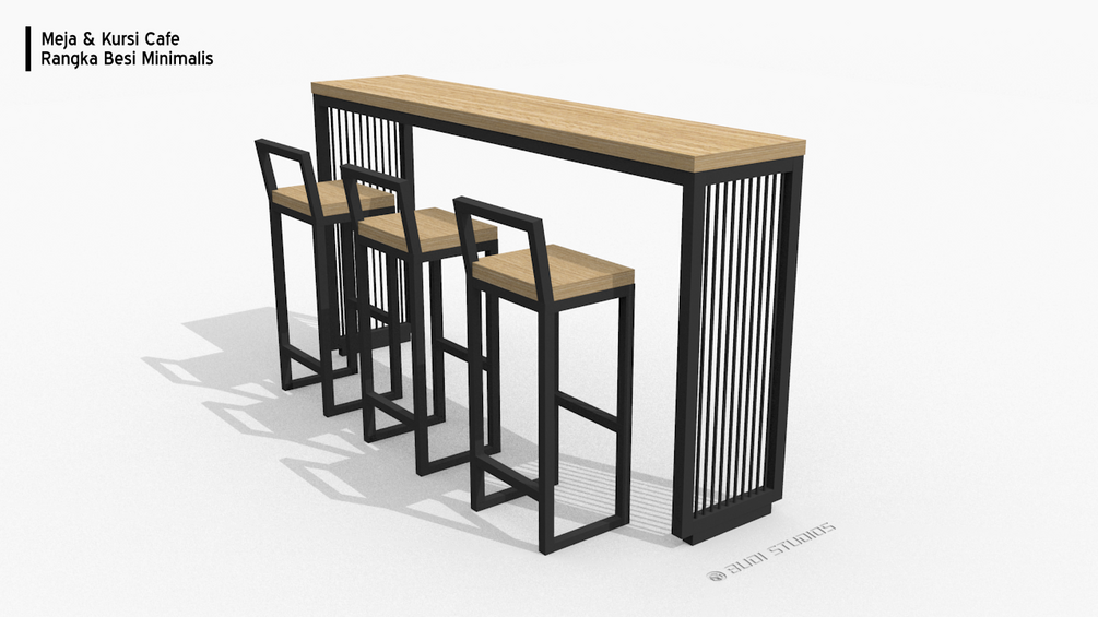 Desain 1 Set Meja & Kursi Cafe Besi Minimalis (Long Frame) merupakan pilihan yang tepat untuk menghiasi cafe Anda. Desainnya yang minimalis, rangka besi yang kuat, dan bahan kayu yang berkualitas membuat set ini tidak hanya tampak menarik tetapi juga tahan lama.