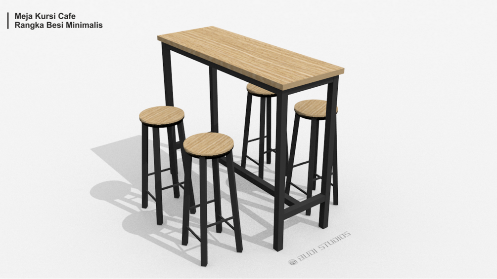 Desain satu set untuk meja dan kursi cafe minimalis dengan bentuk kursi bundar adalah pilihan yang sempurna untuk menciptakan suasana yang modern dan elegan di cafe Anda.